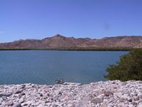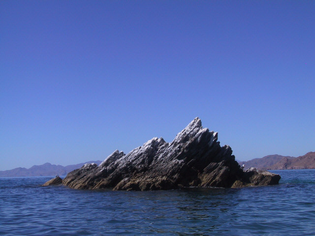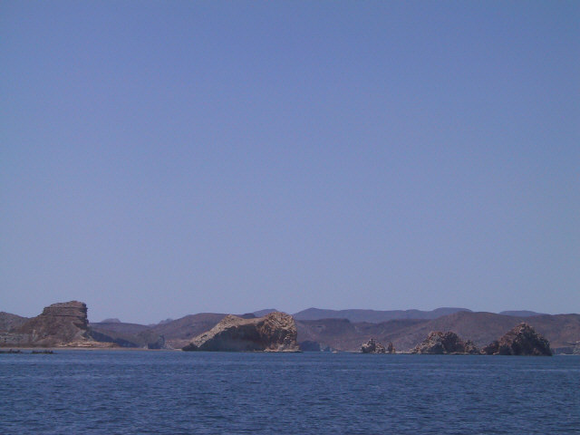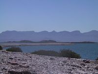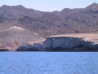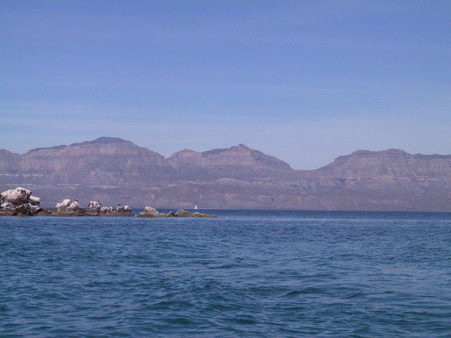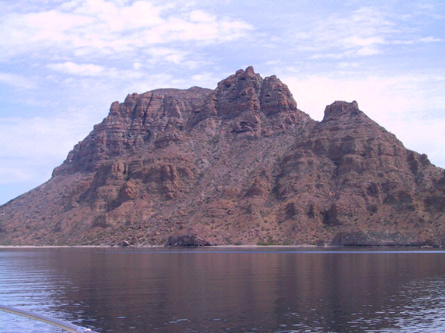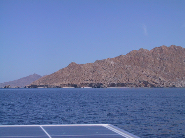 We ate breakfast, got ourselves organized and set off for Puerto Escondido where we thought we'd buy dinghy fuel since we were running very low. We got there and the Mexican working the fuel dock advised us not to buy it there as he was obliged to charge 20% extra for handling. Get it from Loreto he says. The Waiting Room anchorage wasn't at all appealing to us so we pulled up the hook and headed on over to Bahia Marquer on Isla Carmen, a 6.5nm hop to the North East. We actually would have run it at about 8knots if we'd had the mainsail up but we were under jib alone, which we had to reef/furl in because we were towing the dinghy and it wasn't happy being toWednesday that fast in a choppy sea. We rarely do this as it's too much stress on the old girl but we figured for 6nm it wouldn't be too much of a problem. We sloWednesday the boat back down to 4knots and made the dinghy was happy. A mile out from Marquer. We saw another yacht heading for the anchorage and suddenly he took off doing about 8.5 knots. He was damn sure he was going to overtake us and have the pick of the anchorage. It is one of Robin's favourite line's: Look there's a yacht on the horizon on our starboard side, it will soon be motoring at full power to cross our bow and get to the anchorage first. There are variations where the other yacht drops their sails to be able to motor faster. You May guess at the invariable nature of the flag they fly. We just laughed as we never anchor close in anyway and most other boats seem to like having one foot on the shore. The wind blew through the anchorage until about 8pm but it was great holding sand and we were comfortable hence we slept like babes through most of the night.