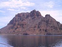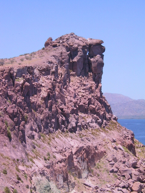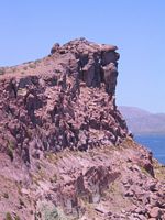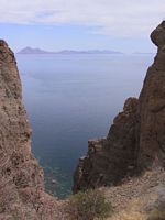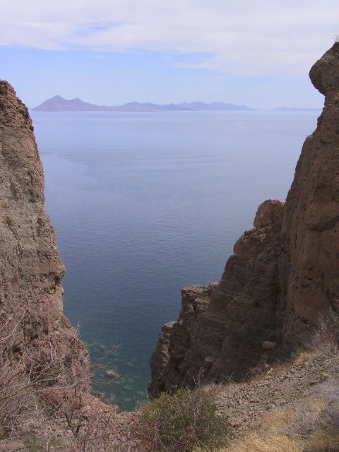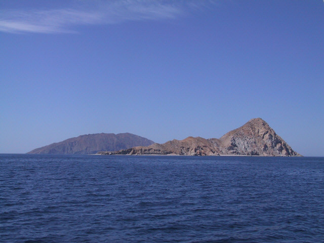 We left Loreto Friday midday and sailed up to Isla Coronado, purportedly an old vulcano with a crater at the summit. At least some cruisers we met said there was a crater. Robin decided the next morning to climb the 925' peak and take a gander at it. He was disappointed to find a 20 foot wide indent which if you used your imagination Maybe it could have been the indent of a crater. But then 10 million years of weathering, tilting etc could make 20 foot craters in your local municipal park. Still it was a pleasant 4 mile stroll errr scramble.