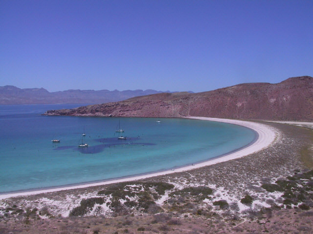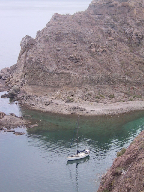 Jumped ashore quickly this morning and had some breakfast, found the internet cafe open, uploaded the logs quickly, grabbed another couple of items from the supermarket we'd forgotten about and headed back to the boat. Dragged the dinghy on board, rolled out the jib and headed over to Ballandra on Isla Carmen. On arrival there was one other boat which was in the process of departing so we had the cove to ourselves for the afternoon until a large power launch arrived. They anchored across the other side of the cove though which was nice of them. We had tried to anchor in their spot when we first arrived but the depth didn't allow us to anchor comfortably. Michelle can't sleep if she can't put out at least 4 to 1 if not 5 to 1 anchor rode. And if there's any sign of wind she wants more than that. God knows how she's going to cope in the Carribbean with the tight overcrowded anchorages but then we are going around the world the other way aren't we?