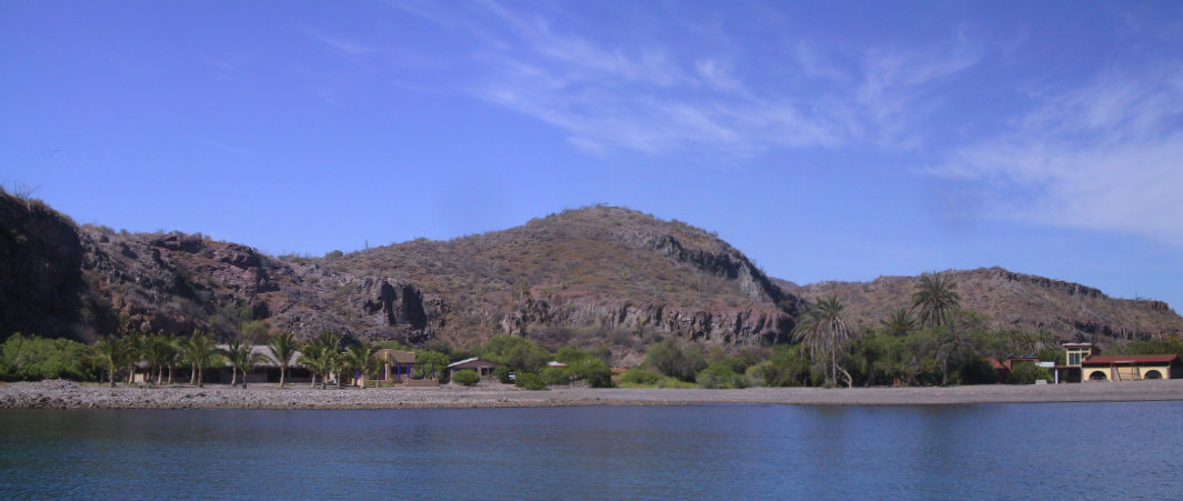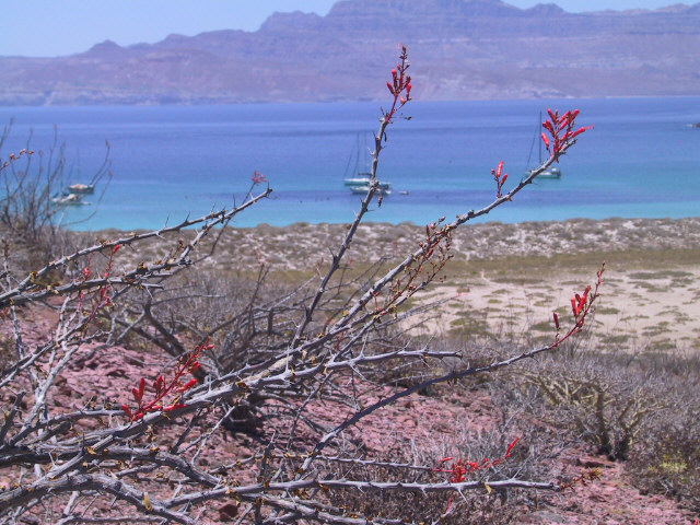 Robin went ashore and hiked up into the little gully past a lagoon area. Flowering trees and lots of bees. He brought back a swarm of bees with him and we'd realized there had been no bees over in Loreto. There was plenty of water over there so they weren't bothered about the tiny drops they could find on a boat. The bees have been a challenge. Everything has to be kept dry, the sinks continually wiped out, the taps wrapped up or the bees try to crawl up inside looking for water. We shower on deck so as no water is left in the bilge. We keep our water in water bottles so we don't have to pump it out and cause unneccesary temptation to the poor little critters. Some afternoons they're almost in a frenzy if Robin cuts a lime to make a cocktail. Robin waves them out the hatches with a tea-towel but they fly twice around the boat and come right back even when they have found no water - then some slaughter occurs and it is all quiet for a while. Sometimes we mess up and leave some water somewhere, eg a bit in a cup, and then its all too late and 20-50 bees are in a frenzy - too late for individual executions so we resort to the sickly smelling repellant which is equally effective for the bees and us.