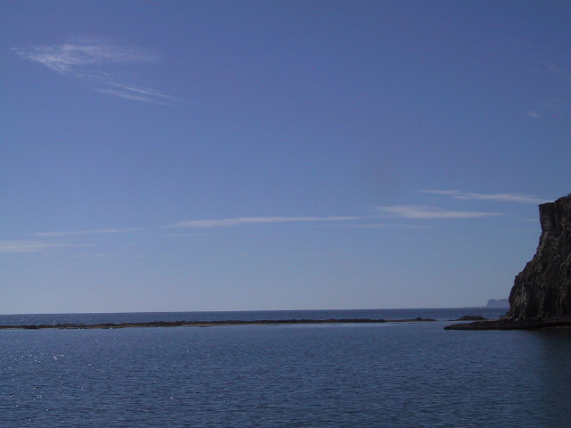 Corumel kicked in around 11:30 last night but it wasn't too bad. It gusted to about 25knots at times but the anchor was set well and we didn't budge all night. The wind was from the best direction as expected, from over the nearest cliff. Not that either of us got much sleep (the usual story the first night out after being traumatised into insensitivity in a marina, but we didn't feel threatened at all.