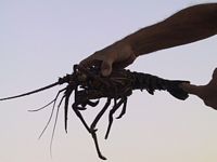 There were already 4 boats in the northern anchorage of Los Gatos and we kind of groaned as we've become quite partial to being the only boat around. We tucked into a spot and enjoyed a couple of hours before the wind kicked up again bringing with it an annoying little swell just at the wrong resonance for Warrior which was sent rocking back and forth. This would endure the entire night. Late this afternoon a panga arrived with fresh Banded Pargo and we decided to buy a fish off him since we'd not caught any the last day or so. Robin wrapped it in foil and BBQ'd it later. While we were talking to the panga guy, Robin brought out the fish identification book and the guy looked through it till he found the exact fish we were looking at. The first one Robin pointed out wasn't right and our panga friend was determined to find just which one it was. Anyway while talking to him he suddenly says, "Would you like some lobster? (in Spanish)". We thought he was going to bring it tomorrow but he immediately turned around and went zipping across the bay to find fresh lobster. An hour later he came back with a defeated look on his face - he could only find one large one (about half the size of a good Tassy crayfish). It was like gold to us. We bartered some gasolina for the lobster - about 2 dollars worth of fuel (all we could spare). Bargain! But he was so happy - he must have really needed the fuel. He was a different kind of fisherman to the ones we have seen - he was by himself (there's normally 2 or 3 in a panga and he clearly fished by free diving wetsuit, a couple of spears.