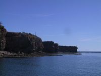 | We never get tired of looking at the various craggy profiles of the cliffs. This one reminds me of a jolly old face. |