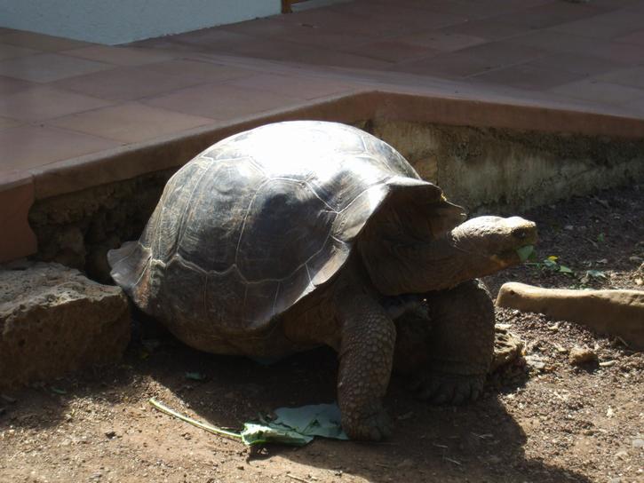 The visiting trail of the Galapaguera is 900m long and in addition to the reproduction center, also houses many endemic plants and bird species in a semi-natural environment. We arrived through the gate and immediately were met by a tortoise. Very cool up close and personal welcoming committee.