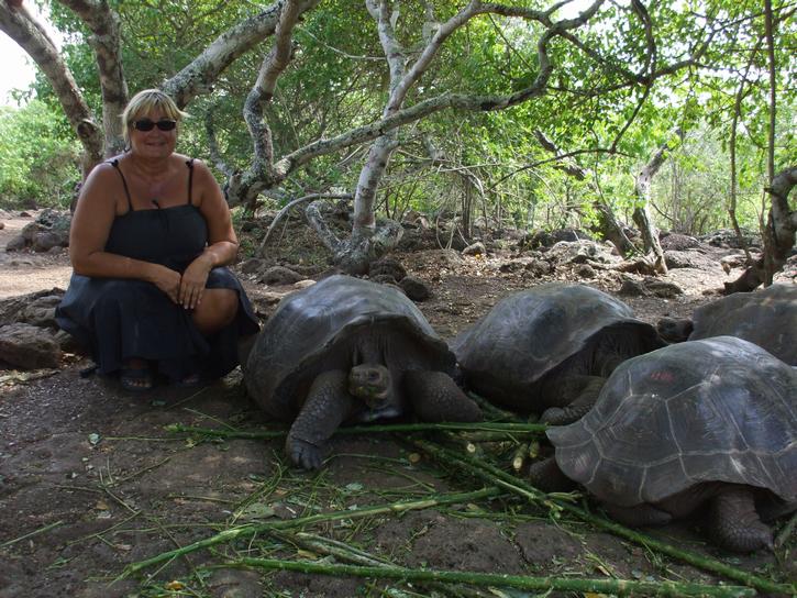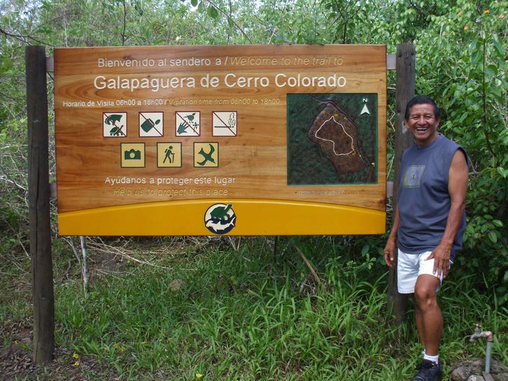 We had arranged with Fernando, our agent, to do a tour of Isla San Cristobal today and although we are usually wary of such undertakings it was surprisingly a good tour. There were just four of us, the other couple were Danish from the yacht Mizlar. They are on a mission to sail around the world in just two years and have made it all this way from Denmark since July last year. We piled into a dual cabin ute type taxi with Carlos our guide for the day and off we headed to the east side of the island. Isla San Cristobal is the fifth largest island in size, 558 sq kilometers and is situated at the far east end of the Archipelago. We were just going to explore half the island today as there are no roads to the northern end of the island. First stop was the Galapaguera de Cerro Colorado, a place for the reproduction of rearing of the San Cristobal giant tortoise (Geochelone Chathamensis). Each of the islands of the Galapagos had itīs own subspecies of tortoise, and there are apparently 11 different species, and another 3 which have become extinct. Isabella had a different species inhabit each of its 4 volanoes.