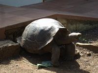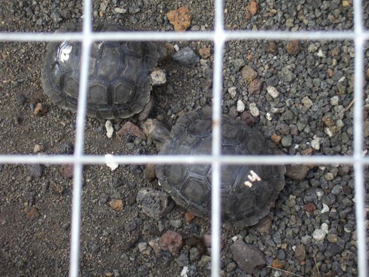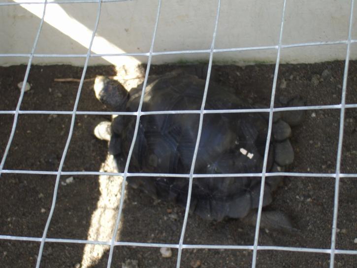 We wandered around the prepared path, stopping to read the plaques, checking out the various plant life and finally arrived at the Rearing Center. We learned that the eggs are carefully collected from the tortoise nests and are transferred to the incubators, being placed in the same position they were found in so as not to damage the embryo. Here they are incubated between 90 and 120 days kept under strict temperature and humidity control. In nature the tortoise digs a hole in the earth, lays her egss and seals this with a mixture of the dirt, urine and excrement. The babies have to dig through this hard earth with much effort to survive. It will usually take a baby tortoise between 20 to 30 days to dig themselves out of this mess and this entire time they havenīt eaten to drunk a thing. In order to survive they depend on the reserves of the egg yolk sac which they carry attached to their stomachs. To imitate this process the young are kept for the first month of their life in a dark room. Mmmmk guess itīs working. Once this time has passed they are transferred to the enclosures where they are measured and weighed each month. They spend the first five years in this environment and then are released into their natural habitat.