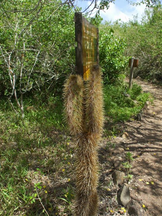 The flora was interesting, the most notable being the manzanillo (apple) tree which is poisonous to humans but an essential food to the tortoises, the Matazarno tree which only grows in the dry regions on Isla San Cristobal and Isla Santa Cruz and is reported to be extremely tough (legend has it that the first dock in San Cristobal was made of this wood while the metal parts completely corroded away the wood hadnīt taken a dent), the Galapagos Croton which is an essential food group for the finches, the Scalesia Tree only found here on Cristobal and quite rare, and a variety of cacti and a flowering plant Carlos called Agodon (Cotton) which had a pretty yellow flower. Sorry but Michelle is really interested in plants so you get to put up with her obsession.