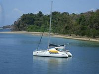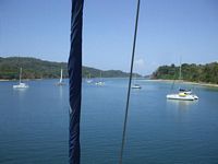 When we said our goodbyes this morning we had a few people say, but you know there is 20 to 30 knots of wind out there and oh my gosh, 5 foot seas. We both look at each other and go, sheesh we get to sail for once. In preparation we decided to put our 65% jib back on the roller furler to see how it would perform in those conditions. Well we got just 20 knots of wind if you donīt count the two higher gusts, and the seas were almost flat calm. Warrior didnīt even look like heeling and we did a comfortable 7 knots. We were as happy as pigs in mud and were in Espiritu Santo by early afternoon. We do wonder how some of these people make it across oceans if they are worried about 25 knots of wind. We are continually amazed at how many sit in port till thereīs no wind and then they motor to their destination. It completely boggles the mind. Anyway we were happily out of Panama City, we had a great sail and we are now sitting in a calm anchorage, albeit the wind is still blowing at 15 knots, and we think we will actually take tomorrow off and have a wee rest.