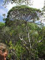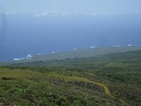 After the Galapaguera we headed back towards the volacano, and climbed the hill to view El Junco Lagoon. It is the biggest freshwater reservoire of the archipelago and our guide tried to explain to us that the water rises up through the ground and is continually replenished like a spring. Robin the ever sceptic scientist highly doubts this but we have no way of researching it right now so Michelle is taking the word of the guide. To the southwest of the lake along the mountain ridge are 3 wind generators which provide up to 50% of the electiricty for the island. There was a great view of both sides of the island up here as well. And climbing the stairs to the top we finally got to observe another endemic plant to the island, the Miconia, a low scrubby flowering shrub.