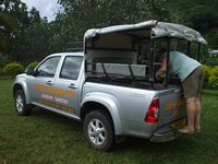 We collected the sail slides today and met Rose Corser who wanted a whopping three dollars for all she did to help us. It was almost embarrassing to pay so little. It would have cost us an arm and a leg through an import agent. At least we will be able to use the full mainsail again once the new slides are sewn on. Michelle checked out the supermarkets which have no fruit or vegetables but you can find a little gem such as Kikkomanīs soy sauce. There is an enormous variety of tinned food which sadly seems to form the basis of the Polynesian diet. Understandable since you canīt eat the local inshore fish due to Ciguaterra poisoning. The fisherman have to go out and catch Tuna, Mahi Mahi, Wahoo or Barracuda and there arenīt all that many fisherman. We miss seeing the Central American Pangas heading out to fish.