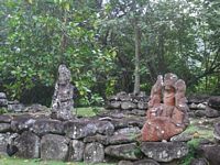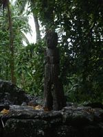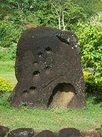 Hikokua was restored in 1987 and Marquesan artist Uki Haiti carved three modern tiki for the site. One has a turtle shell for a head and human couples in coital passion carved on its sides.