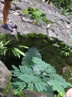 Jocelyn also pointed out a stone standing near the palm tree. This used to lay flat and was a work table. The round holes were used to grind various things from spices to ink for tatoos, the two long slits used for sharpening or making their tools and the half bowl shape you can see held water. These work benches were used into the 19th century.