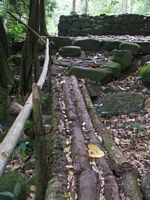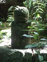The hike to the falls takes roughly two hours, the trail is marked with small stone cairns, and it wends its way across rivers, underneath towering cliffs, through dense hau forest, which cleared occasionally to allow incredible vistas of the soaring mountains around the valley. We passed by a forest of mape whose buttressed roots hid ancient paepae, once the happy metropolis of the Taioa tribe who occupied the valley. Finally we arrived at the base of the falls, where we stripped down to our swim gear and jumped on in. The pool was full of fresh water shrimp which pecked away at you as you made your way across to the other side, over some bolders and into the main cavern at the base of the falls. You actually couldnīt see the entire water fall, just the remnants trickling into a pool at the bottom. On the return journey close to the village of Hakaui, Robin and Nick stumbled upon an old paepae and then a tiki hidden in the undergrowth.