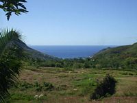 We climbed out of the Taipavai Valley to the Teavaitapuhiva Pass at 1,608 feet (490 meters) and stopped for a stunning view of the Teuakueenui Waterfall which is home to the new electricity plant. We canīt remember how high it was. On the opposite side you could see Hatiheu Bay where we would be heading for lunch and further over you could just catch a glimpse of Anaho Bay which we may visit by yacht. We havenīt decided yet. The only way to get to Anaho Bay is via a hiking trail or by sea which makes it very tempting indeed.