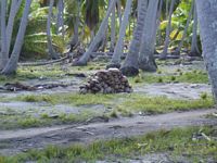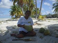 We wandered back around to the lagoon side and were spied by one of the locals who immediately chopped three coconuts down and sat waiting for us to wander up. She invited us to sit with her in the shade of a cocount palm and hacked open some fresh green coconuts for us to drink. Truly refreshing. We chatted for about 45 minutes then finally took our leave and headed back to Warrior.